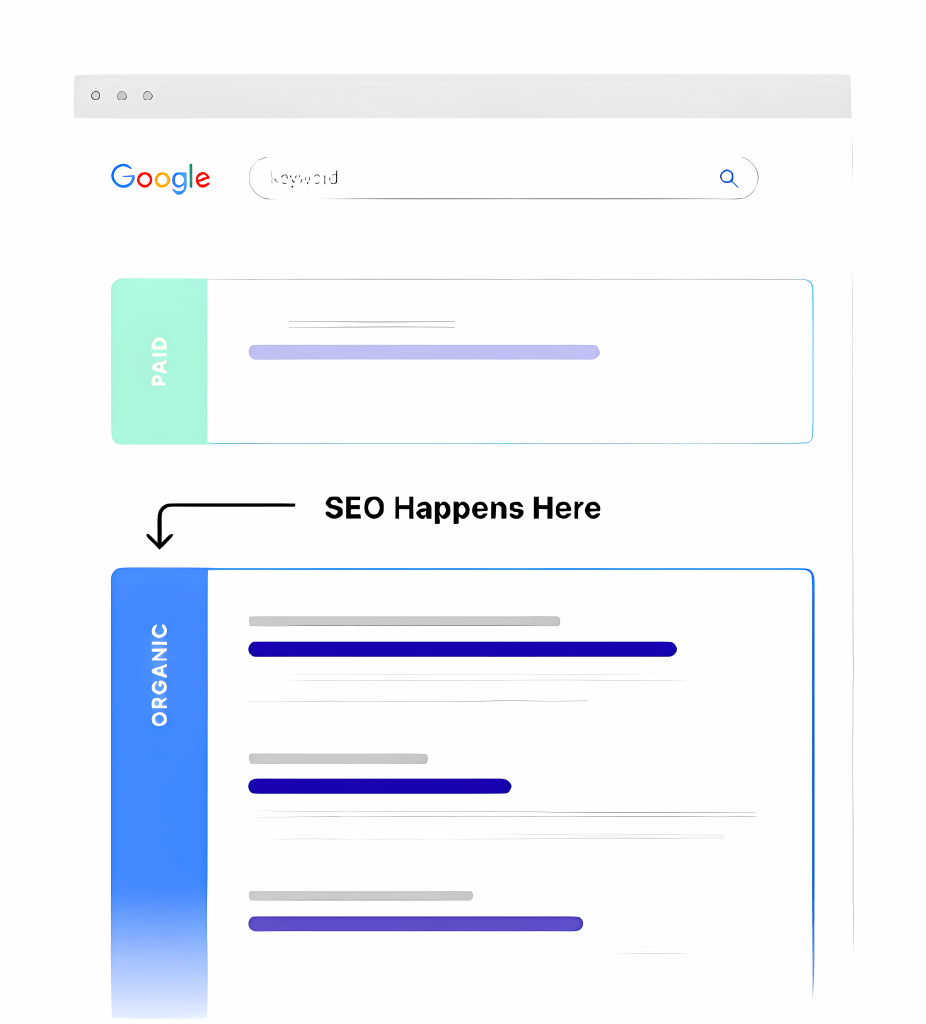 SEO就是提高您的网站在搜索引擎中的有机排名。如下图所示: