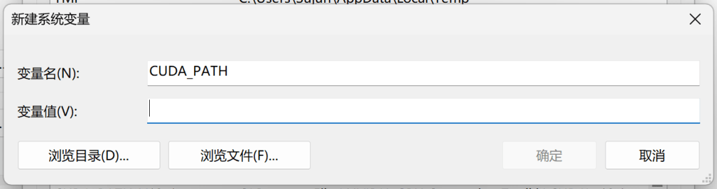新建CUDA_PATH,值为刚刚安装的CUDA的目录。